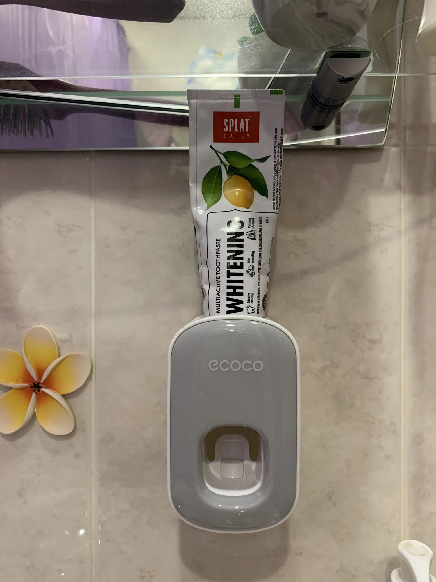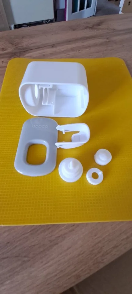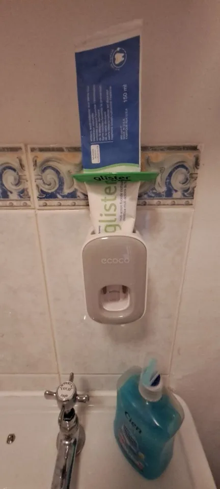 A comfortable thing, it came quickly, it performs its functions perfectly, you do not need to constantly pull the cap and if you have glass shelves, it gets rid of drifts in case of wet the covers of the paste. Squeezing out not so much but on In fact, you can press twice, you need to adapt to the electric brushes that would fall exactly into the bristles. It is glued to the flat surface, it will fall off on the rough surface over time, a less smooth tile will do, but it is better to flatten the bubbles with Velcro.